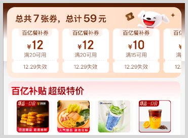 3、京东外卖红包餐补券